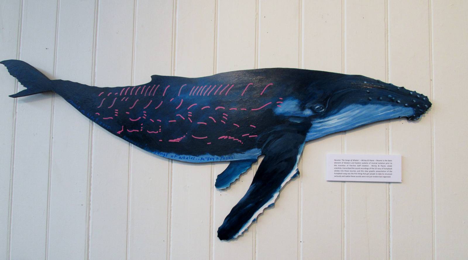 Community Art is Janet’s expression that art should be accessible to all. Her Art n’ Mind shapes and paintings expand this value, making shapes that can fit on any wall, art that is small in size and smaller in price. I’m sure most of you here tonight have a heart, a house, a bird or a plane on your wall. And tonight you see whales….
